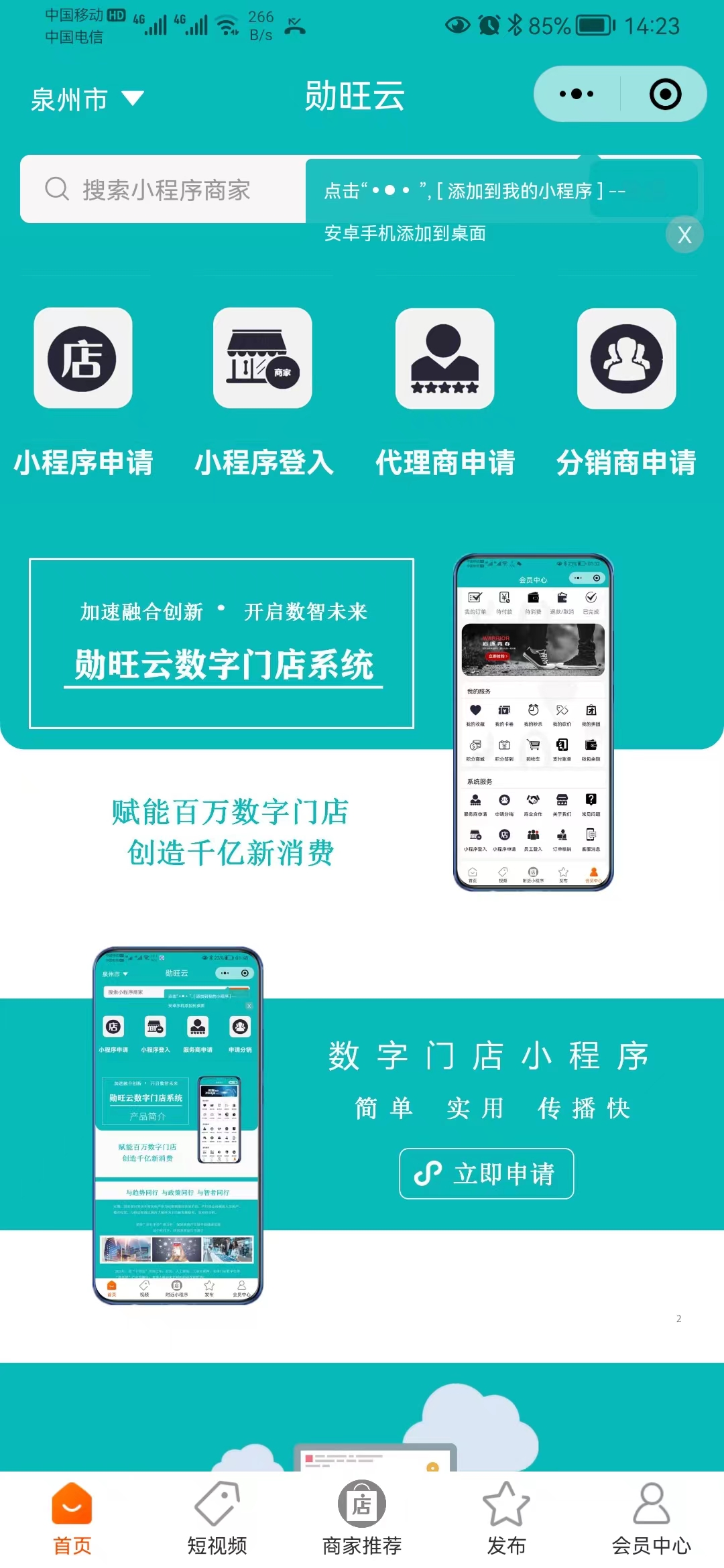• 商家小程序申请