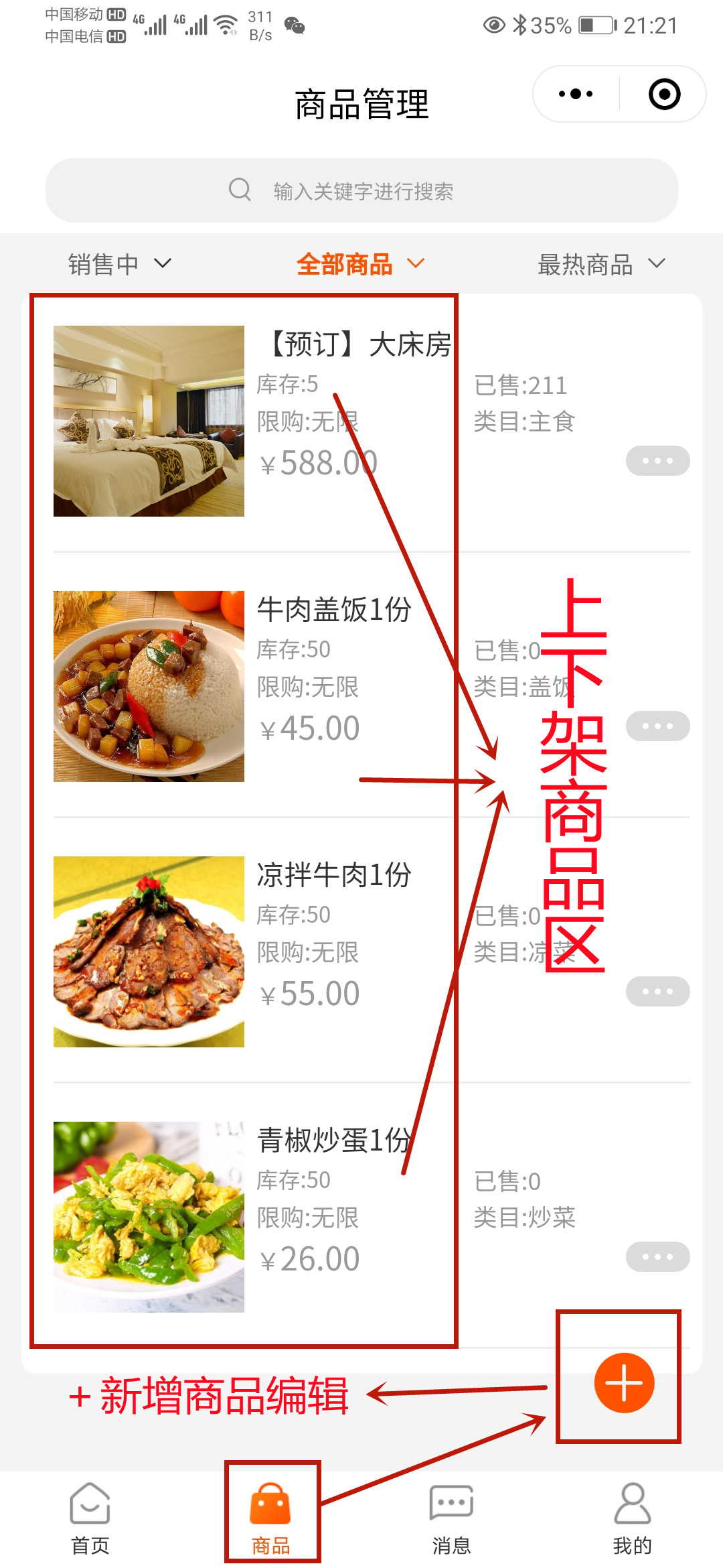 第三步:点击商品:所有商家商品展示与编辑,点右下角+进行新增商品编辑