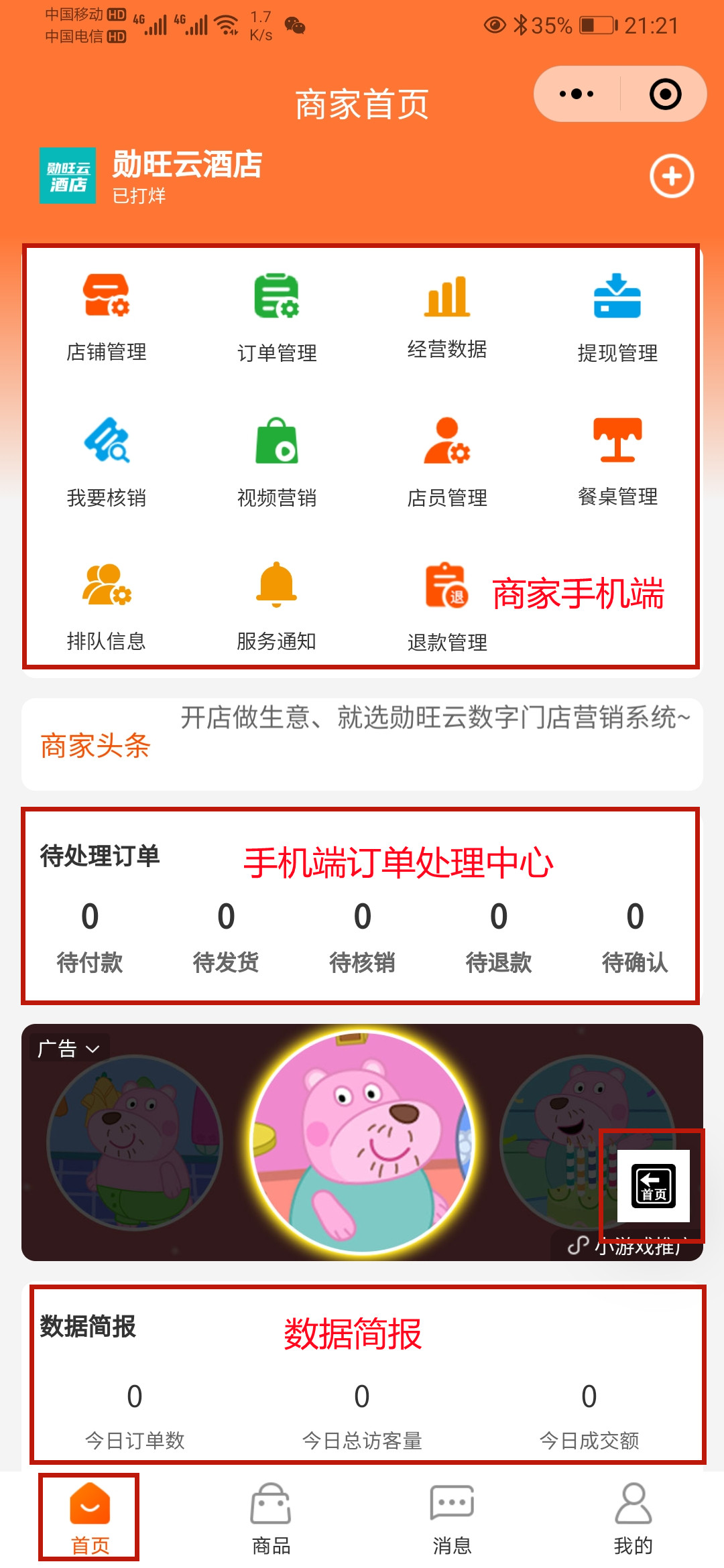 为了商家更好的管与使用门店系统,手机上操作更便捷,商家可登入手机端商家后台,步骤如图